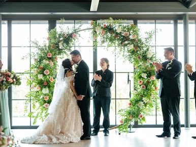 Our 90" round circle arbor is very sturdy allowing us to design beautiful flowers to complete your wedding ceremony